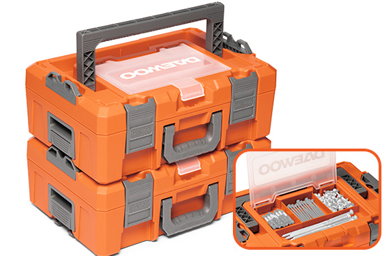 Отдельный отсек на корпусе кейса позволяет удобно переносить необходимую оснастку и крепеж.